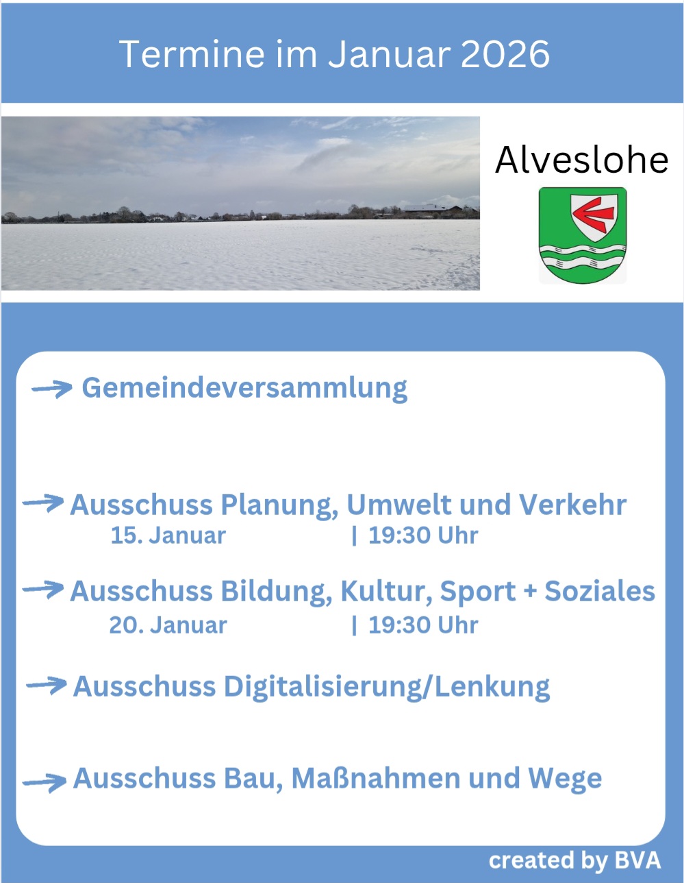 Es gibt auch einen Veranstaltungskalender der Gemeinde Alveslohe.